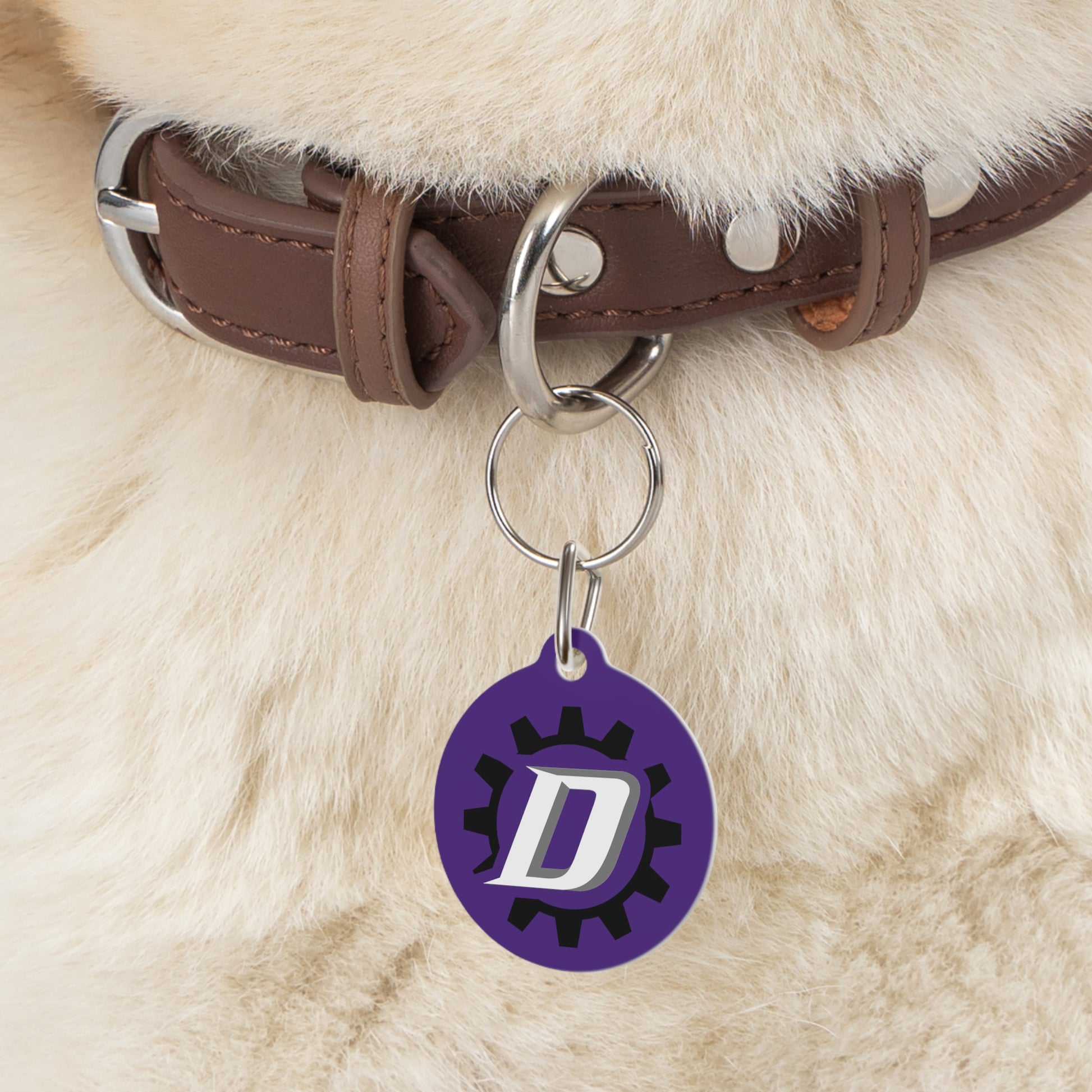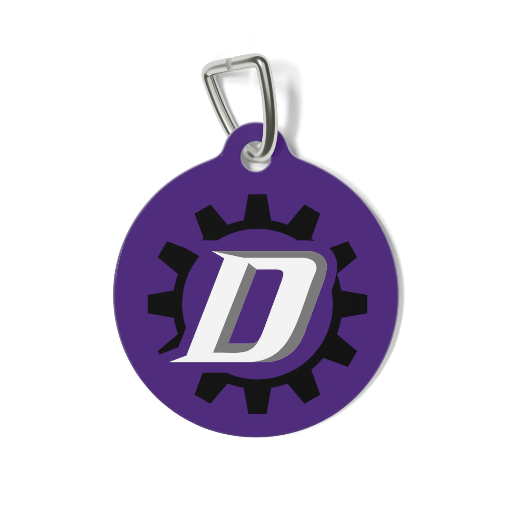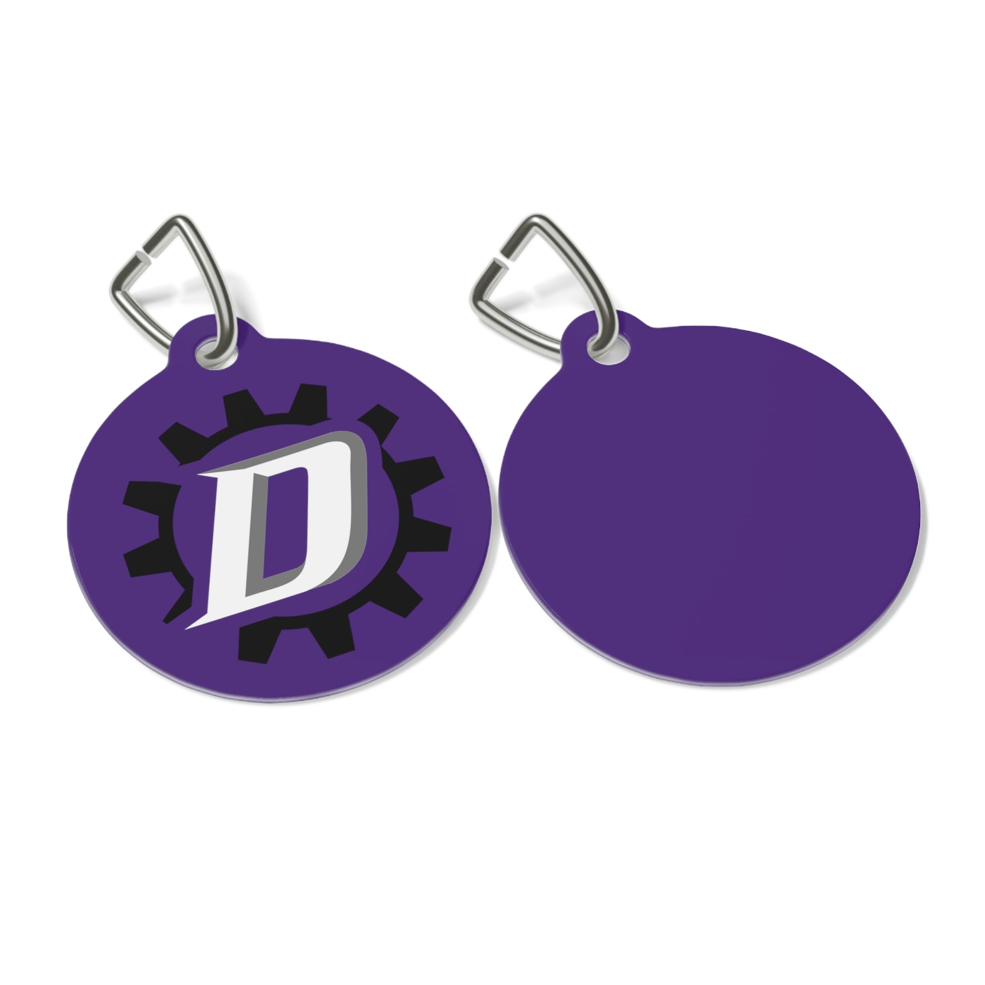 Personalized pet tags provide a fresh way to spice up a furry friend's collar. The tag and clip are both made of metal. This increased durability comes in handy, as collar pieces can snag on brush, corners, etc. The base color is white, giving designs an even printing surface. Both sides are flattened.